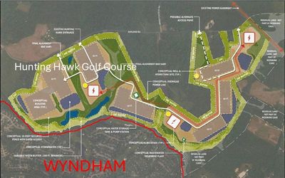 Hunting Hawk Technology Park is a land development project proposed by a group led by HH Hunt to build 10 data center buildings (each 6 stories tall) on the Hunting Hawk golf course as well as adjacent properties to the east. For this to happen, Hanover County must approve changes to the comprehensive master plan, must approve re-zoning, and the approve the the proposed project.